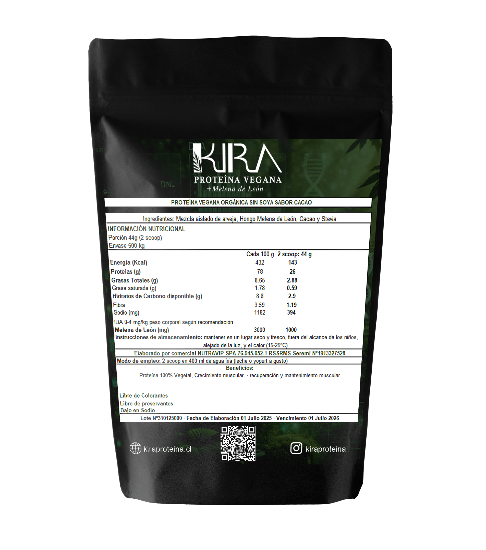 KIRA Proteína Sabor CACAO 1KL cantidad