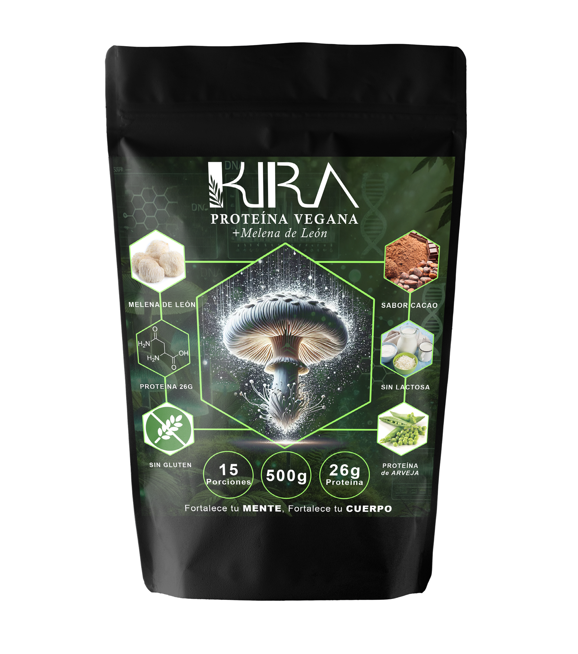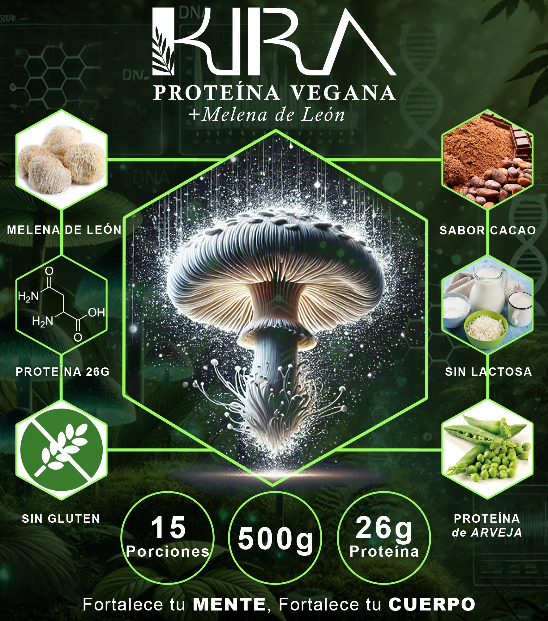 Proteína Vegana de alta calidad más Melena de León. Sabor a Cacao