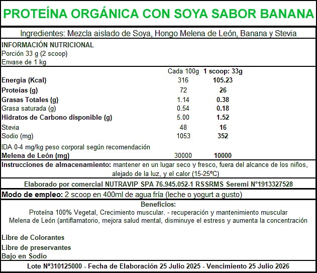 Proteína Vegana de alta calidad más Melena de León. Sabor a Banana